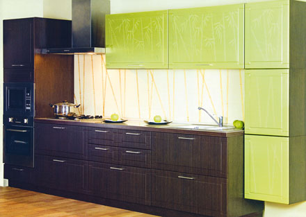 Кухня «Жасмин 4 + Камелия» Фасад МДФ толщиной 18 мм в пленке ПВХ цвета «венге», которая удачно иммитирует фактуру натуральной древесины. В данной модели отсутствуют элементы с гнутыми фасадами.