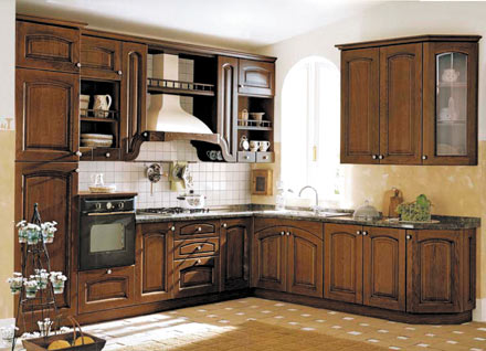 Кухня «Гварнерри» Массив акации, окрашен с эффектом состаренности. Три слоя лака. Более 20 классических моделей фасадов из массива дерева производства Италии.
